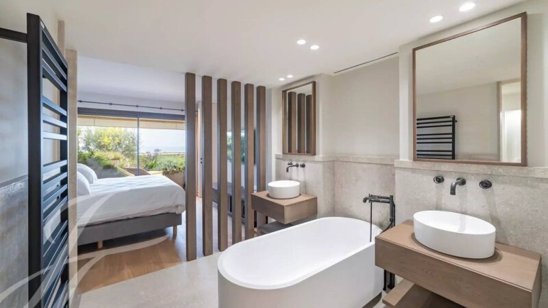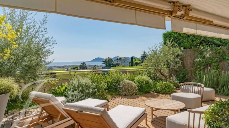 Rare renovated sea-view apartment with magnificent 57 sq.m terrace. Located in a luxury residence with security guards, superb grounds, swimming pool and tennis court, in the sought-after La Californie sector, this 81 sqm, south-facing, 3-room apartment enjoys a magnificent panoramic sea view over the bay of Cannes, the Lérins islands and the Esterel hills. It comprises an entrance hall, a living room with fully equipped open kitchen opening onto a vast south-facing terrace, 2 en suite bedrooms with a bathroom and a shower room and dressing room, guest toilet and plenty of storage space.