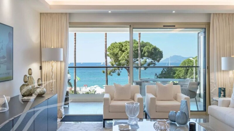 In a prestigious residence on the Croisette, this magnificent apartment offers breathtaking views of the sea and the Bay of Cannes. Recently renovated, it boasts luxurious amenities and elegant furnishings. With approx. 88 m² of living space, it comprises an entrance hall, living room, dining room, semi-open kitchen, bedroom opening onto the south-facing terrace with sea views, spacious shower room with toilet, second bedroom opening onto the rear terrace, shower room and guest toilet. A parking space completes this high-end property.