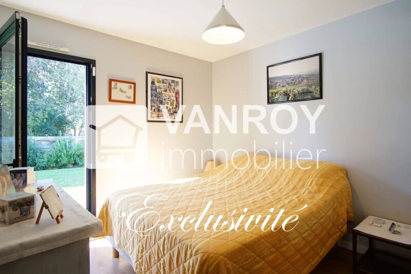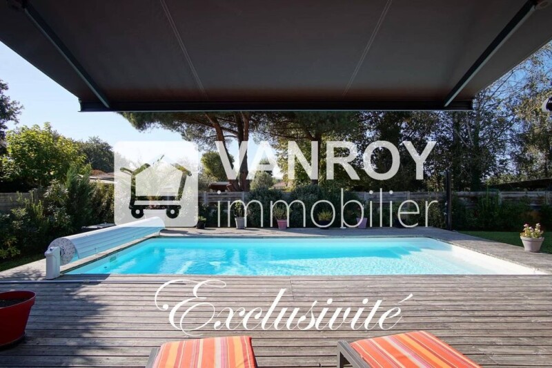 EXCLUSIVE! This superb contemporary villa, built in 2015, is perfectly maintained and bright, with impeccable features. You'll immediately fall in love with the quality of its construction and materials. Its optimised layout, generous living space and numerous terraces with a direct view of the heated swimming pool are sure to win you over. Situated in a peaceful setting surrounded by greenery, the 170 m² of living space sits on 1200 m² of flat, unoverlooked, attractively fenced land. This modern, original-style villa is divided into 2 distinct sections. The main body comprises an entrance hall, a pleasant living room with sloping ceilings, a fitted kitchen separated by a large glass roof, and a pantry. The private night space includes a master suite with dressing room, a large shower room, a second bedroom and a separate toilet. All the villa's living space opens onto a large wooden terrace with a bio-climatic pergola offering a direct view of the swimming pool. In addition, an adjoining 21 m² room (tiled, insulated and equipped with a bay window) can be used as a sports room, storage room, separate workspace or other. The secondary building, with its 2 bedrooms, shower room and toilet, is directly accessible from the entrance and offers comfortable accommodation for children, families or friends. Finally, there are plenty of covered and uncovered parking spaces. As the villa does not require any work, you can move into this little corner of paradise straight away! We'd be delighted to show you this enchanting, private setting. Please note that a full virtual tour is available on request. Don't hesitate to contact us! Isabelle & Philippe Information on the risks to which this property is exposed is available on the Géorisques website:.