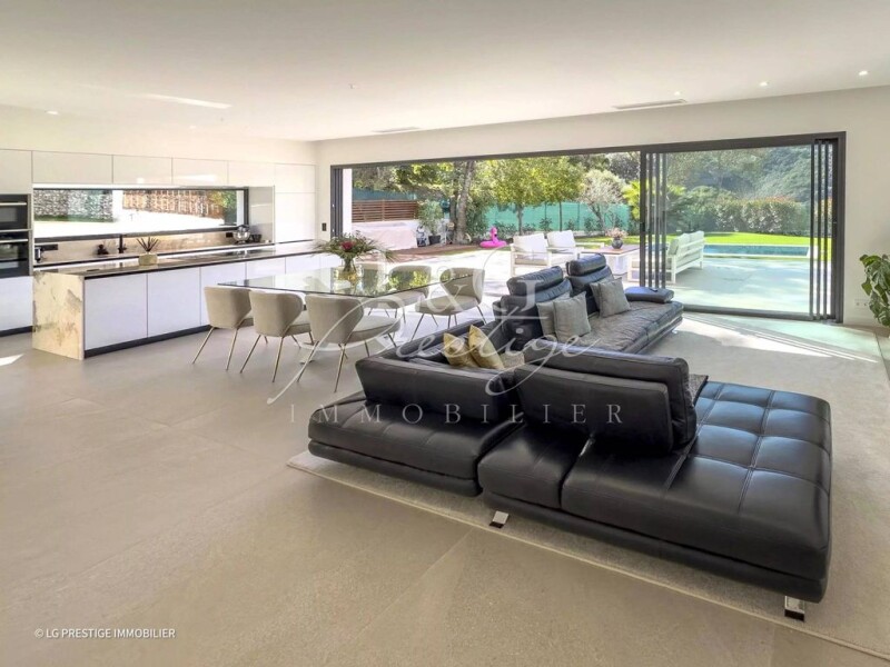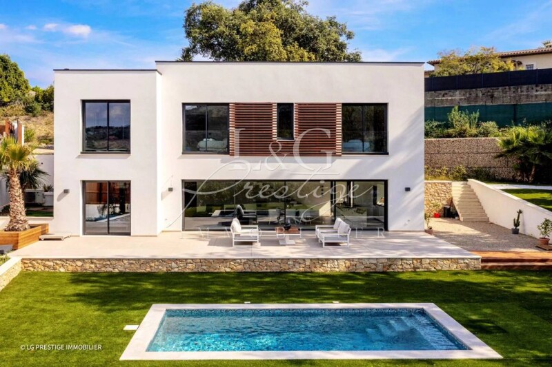 UNDER ACCEPTED OFFER. The LG Prestige Immobilier agency in Mandelieu-La Napoule offers for sale this superb contemporary villa, completed at the end of 2023, covering an area of 155 m². Situated in the hills, it offers a peaceful living environment close to all amenities. The interior features a spacious living room bathed in natural light, complemented by a modern open kitchen. The villa also includes 4 en suite bedrooms, each with its own bathroom, guaranteeing comfort and privacy. Decoration has been meticulously carried out, using high-quality materials for a high-end finish. Outside, the 1608 m² grounds boast a swimming pool and a large terrace, perfect for enjoying the climate and surrounding views. A true haven of peace combining luxury and tranquility.