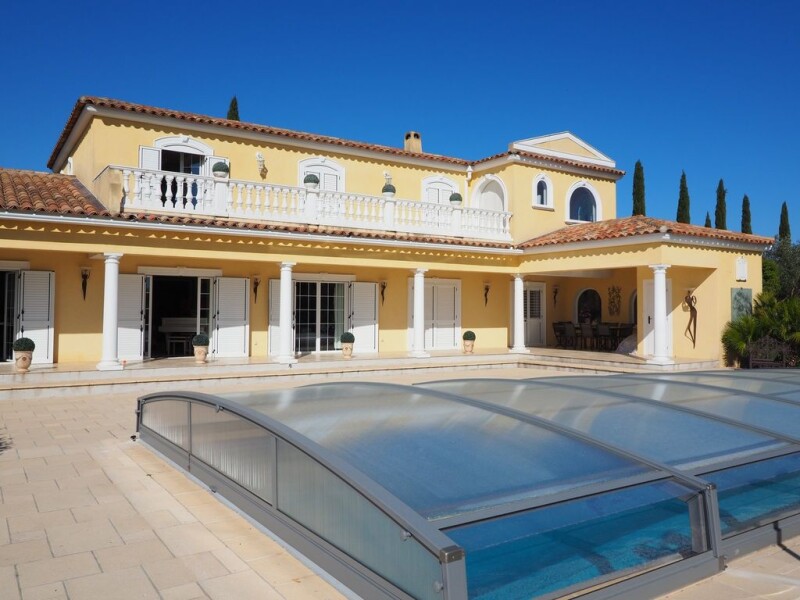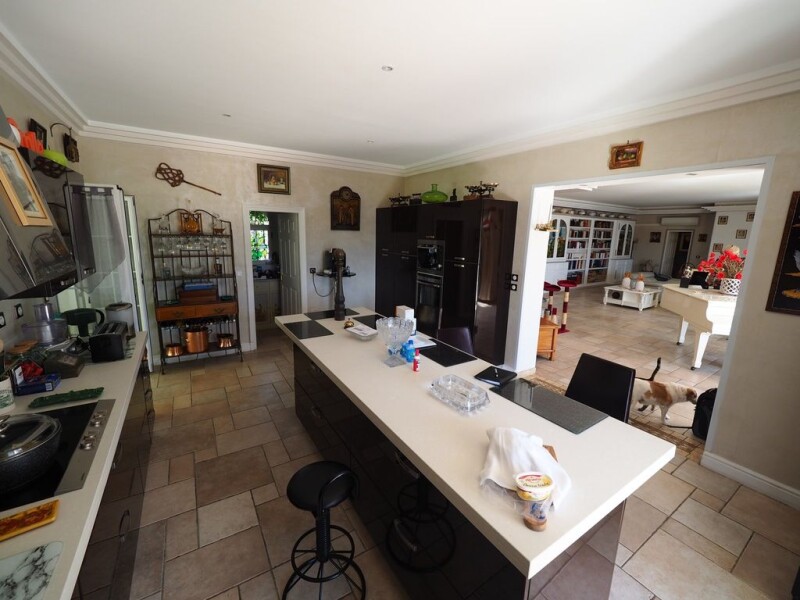 Beautiful villa of 300 m2 in a green setting, offering a comfortable lounge of 81 m2 with a beautiful kitchen of 24 m2. The living rooms open onto the large terrace with swimming pool, facing south. Also a furnished veranda to enjoy a winter room. 4 large bedrooms with their shower rooms or baths including two master bedrooms. A basement of 100 m2 and a double garage of 77 m2. Landscaped grounds of 5500 m2. Come and discover this splendid large property close to the large Provencal town of Draguignan with its cinema, shops, cafes, supermarkets and various restaurants.