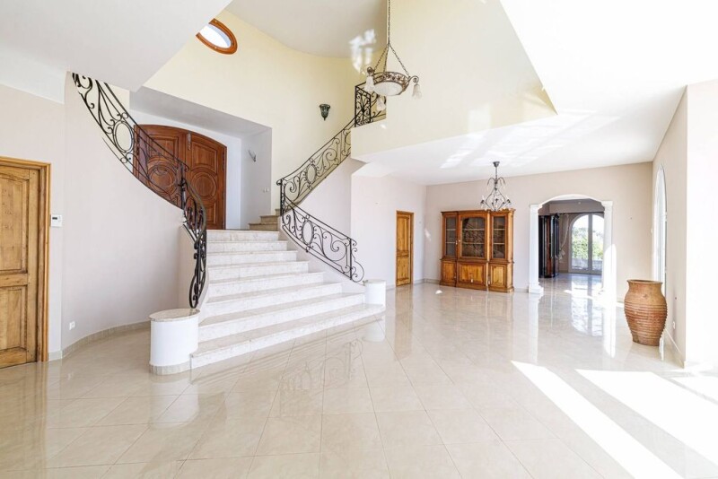 Located in the sought-after Gros Buaux district of Cagnes-sur-Mer, just 5 minutes from the beaches and the town center, this magnificent individual villa offers a dominant position with breathtaking views of the sea, mountains, and the town. Property Features: Spacious living area spread over two levels, including a bright, expansive living room with a ceiling height of 6.5 meters Fully equipped kitchen with a separate pantry for added convenience Dining room opening onto a terrace with exceptional views Master suite of 50 m² featuring a walk-in closet, private bathroom, and a secluded terrace Upstairs, two additional bedrooms with built-in wardrobes and en-suite shower rooms, each offering sea views Outdoor Features: Infinity pool with an integrated jacuzzi, surrounded by a beautifully landscaped garden and multiple terraces, perfect for relaxation and entertaining 180 m² basement and a 60 m² garage, offering ample storage space and parking High-End Amenities: Energy-efficient heat pump Double-glazed windows with anti-burglary features Fireplace insert, creating a cozy ambiance Electric shutters and outdoor lighting, adding to the comfort and security This exceptional villa combines luxurious living, stunning views, and an ideal location in the peaceful and prestigious Gros Buaux area. Offered exclusively by Côte d'Azur Sotheby’s International Realty, your gateway to luxury real estate on the French Riviera. An exclusive opportunity not to be missed!.