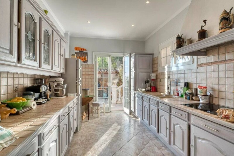 Menton, 7 minutes from downtown Menton, in a dominant position, quiet, with breathtaking panoramic views and exceptional views, between sea and greenery. This lovely villa of 142 sq m built on a wooded garden of approximately 800 sq m, with infinity pool, and its jacuzzi area, summer kitchen, relaxation area, and covered parking. This villa is divided into three levels with an entrance, a living room with fireplace, opening onto a terrace, a fitted kitchen and wc. On the lower floor, 2 bedrooms, a bathroom and a shower room with wc, office, and terrace. At the level of the swimming pool, an independent studio and a cellar. A small 20m² building registered in the land registry completes this property. Garden pond, mosaic pool, automatic gate, barbecue, electric awning and other asset. Property tax €1,992. Fees charge seller.