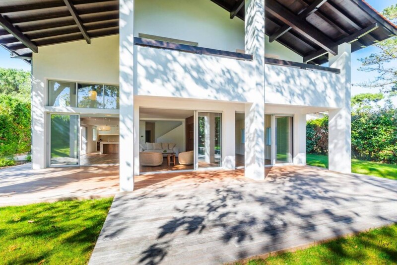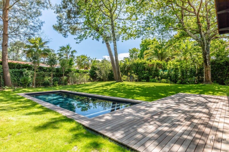It is in one of the most beautiful avenues of Chiberta that stands this magnificent house of more than 270m2 having been the subject of a high quality renovation with the help of a local architect. Largely open to the outside with its many bay windows, this elegant villa bathed in light, is spread over 2 levels. The ground floor distributes a fully equipped kitchen with its laundry room and pantry, a superb reception room, an office and a magnificent master bedroom, all opening onto large terraces with a view of the swimming pool and the wooded garden. The first floor is dedicated to 4 other suites, 2 of which have a terrace. A garage completes this exceptional property. Contact Agnès Arribe on 06 22 70 80 56 Agency fees included of 5% payable by the purchaser. Price excluding agency fees €3,300,000. Energy class A, Climate class A Estimated average amount of annual energy expenditure for standard use, established from 2021 energy prices: between €940.00 and €1330.00. Information on the risks to which this property is exposed is available on the Géorisques website: georisques.gouv.fr.