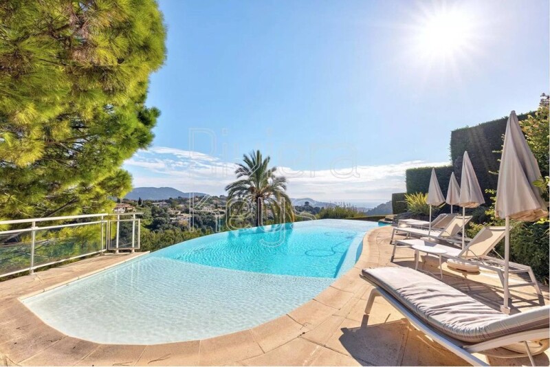 Located just 4 km from the center of Nice, this elegant 200 m² villa, spread over three levels, offers a peaceful living environment in a secure residence. With its 6/7 bright rooms, the villa enjoys magnificent views of the sea and surrounding hills, thanks to its large bay windows. The garden level features a living room with a fireplace, a dining room, an independent kitchen, and a bedroom with an en-suite bathroom and guest toilets. The upper floor comprises 3 bedrooms, a shower room, and a bathroom. The lower level houses a spacious master suite with a private terrace, a dressing room, a bathroom, and a laundry area. The 1350 m² terraced garden, planted with olive, fig, lemon, and loquat trees, includes a pétanque court, a pizza oven, and a barbecue area. A saltwater infinity pool, facing south, along with several terraces, completes the outdoor space, offering perfect spots to enjoy either the sun or the shade, depending on your mood. A double garage and easy access to public transport add to the convenience of this villa, set in a quiet residence of 23 villas, with no overlooking neighbours. A true haven of peace not to be missed! Eva BAQUE +33624368575 État des risques et pollution: réalisé (2024-10-17).