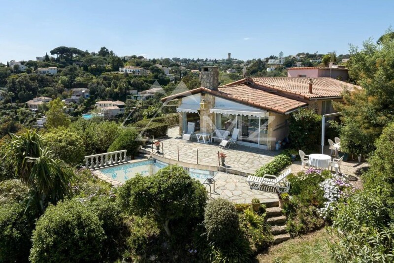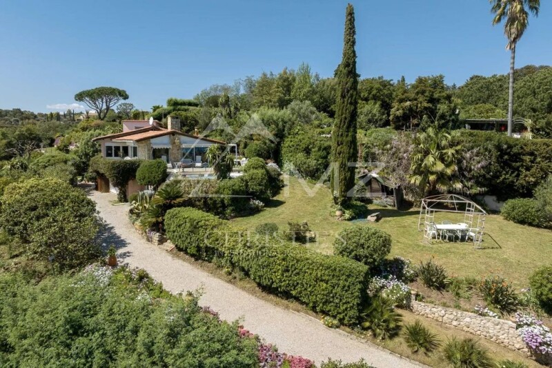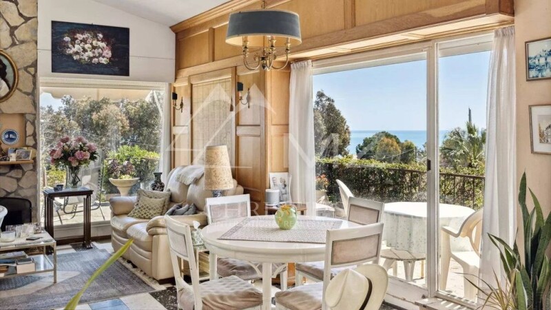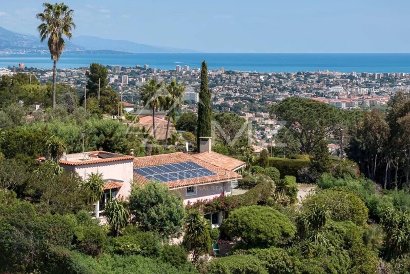 This heavenly green setting, in absolute calm, south exposure, with a panoramic sea view, will seduce you with its two levels including a kitchen living room, five bedrooms, four bathrooms, an office, a reading room, on approximately 182 m2, with garages. Renovations to predict. Exceptional potential. Fees included, payable by the buyer.