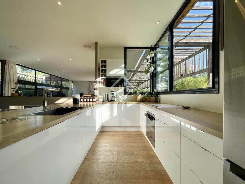 Exclusive to Lucas Fox International Properties, located a few minutes north of Montpellier, in the famous Domaine des Vautes in Saint-Gély-du-Fesc, elegant architect-designed house with many assets. On a plot of 2,350 m² sheltered from view, superb architectural signature of 350 m² of living space with 5 bedrooms, more than 300 m² of terraces including one with swimming pool and pool house, and 160 m² of annexes (triple garage of 61 m² with workshop, patios, 54 m² of storage...). The property is made up of 3 main spaces. The living rooms include an entrance, a large living room with corner and sliding windows, a dining room linked to the island kitchen, a back kitchen/pantry, a laundry room, an office and a guest toilet. These through rooms extend onto various terraces (dining area, outdoor lounge and patio). A vegetable garden adjoins the kitchen. The sleeping area, meanwhile, offers 5 bedrooms (4 share 2 bathrooms) including a master suite with dressing room and bathroom. Finally, for leisure, there is a superb home cinema, a games room opening onto a patio, a lounge, a 25 m² wine and tasting cellar. Outside, enjoy the swimming pool area (12.3 m x 4 m with a 2 m x 4 m beach) with a 35 m² pool house, a real kitchen and its custom-made BBQ, a dining room, storage and toilets. Adjoining pétanque ground and trampoline area. Orchard of apricot trees imported from Armenia. For added comfort, 54 m² of additional space is intended for storage. Triple garage, 3 carports and 6 outdoor parking spaces are completed by a workshop and additional storage. Built in 2010, the property has undergone two major developments, in 2017 and 2022, to improve comfort. Complete file with plans and invoices. File and price on request. Information on the risks to which this property is exposed is available on the website: www.georiques.gouv.fr.