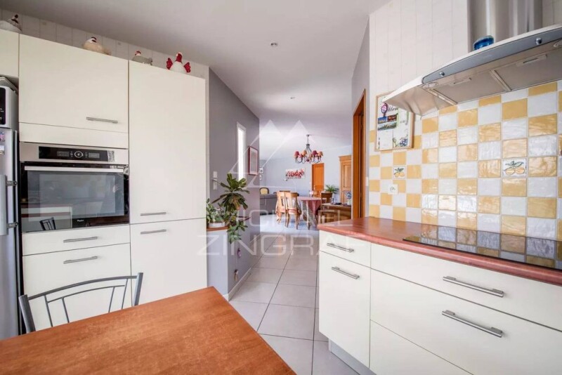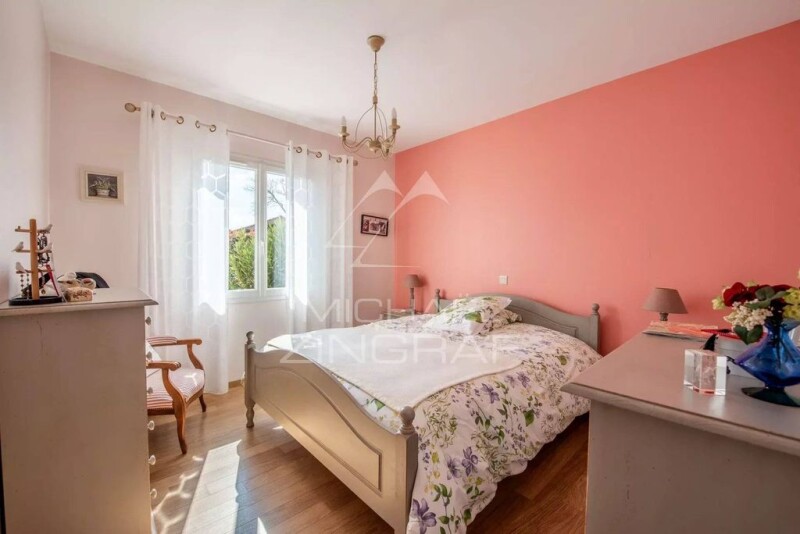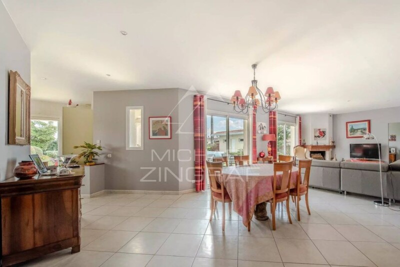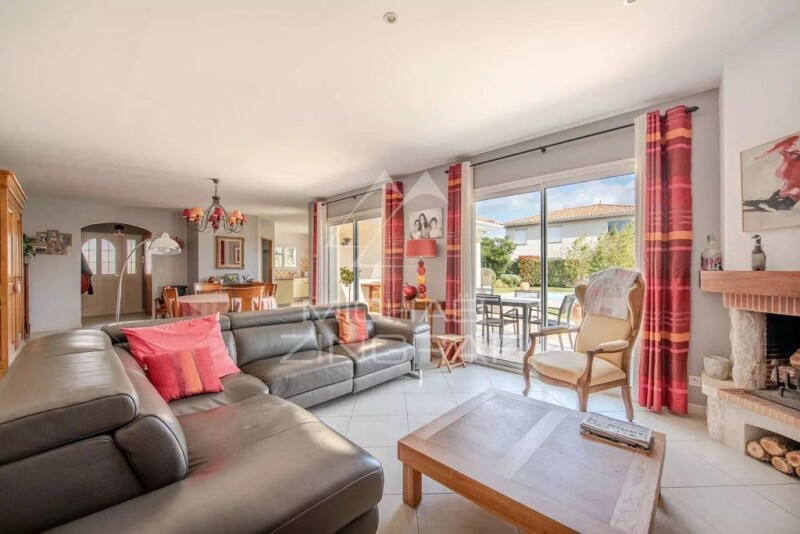 Michael Zingraf Real Estate presents this single-story house in Gujan-Mestras, set on a large landscaped plot. With a living area of nearly 138 m², it offers well-defined and functional spaces. The entrance leads to a spacious living area, where the lounge and dining room open widely to the outside. The semi-open, fitted kitchen extends this space, complemented by an adjoining pantry. The night area features a master suite with a walk-in closet and a private bathroom. Three additional bedrooms, a shower room, and built-in storage complete the layout. Outside, a large covered terrace borders the swimming pool, creating an inviting outdoor living area. The pool house adds a practical and convivial touch, while a garage completes the annexes. Located on the Bassin d’Arcachon, Gujan-Mestras is known for its access to oyster ports, beaches, and surrounding forests. Its preserved environment and infrastructure make it a sought-after location for both main residences and vacation homes.