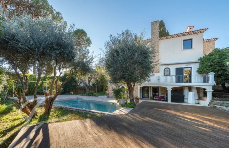 In a gated estate close to the town center, this beautiful, fully renovated villa offers a lovely, unobstructed view of the California hillside and a glimpse of the sea upstairs. With a surface area of approx. 225 m², it comprises a large reception area, fully equipped kitchen, 4 bedrooms, 3 bathrooms including one on the ground floor. Large finished basement. Landscaped grounds of approx. 1,219 m² with swimming pool, pool house and numerous parking spaces.