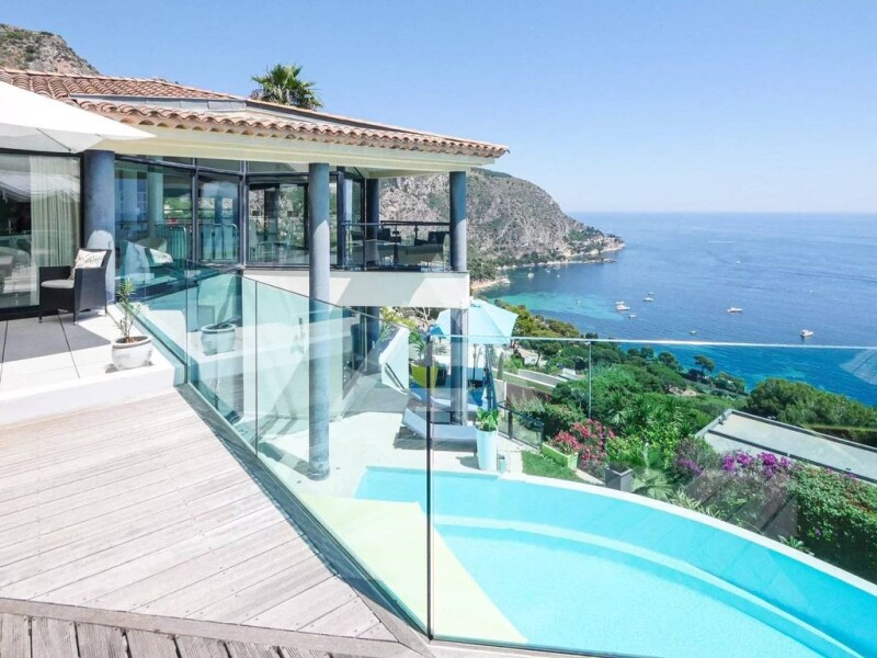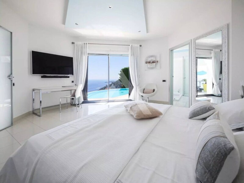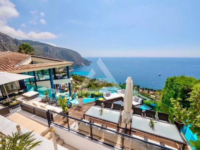 In a dominant position, furnished stunning villa offering breathtaking sea view over the Bay of Eze. This exceptional residence built with high quality materials, spanning over 475sqm of meticulously designed living space. Natural light floods the interiors through expansive bay windows, illuminating the thoughtfully designed livings spaces All the rooms are opened onto the sea to offer an exceptional panorama from all areas of the villa. Ground floor: living room, dining room and open-plan gourmet kitchen, TV lounge/office. Lower level: 1 Master Bedroom and 3 en suite bedrooms with bath/shower rooms. Each bedroom has direct access to a terrace or a small garden for the children's bedroom, laundry room with glazed door onto terrace. High quality fixtures and fittings. Lovely garden of around 1,000m², heated infinity pool, fully-equipped pool house, outside shower and toilet. 3 garages and parking spaces on the property. Beaches 15 minutes away on foot, Monaco 15 minutes by car. Unique Propery offering an attractive rental yield for investors, more information on request. Fees are payable by the vendor unless otherwise stipulated in the mandate. Estimated annual energy costs for standard use: between €2,279 and €3,083. Average energy prices indexed in 2021. The property is not subject to co-ownership. The property is subject to an inventory of natural risks and pollution, which can be consulted on the Géorisques website: État des risques et pollution: réalisé (null).