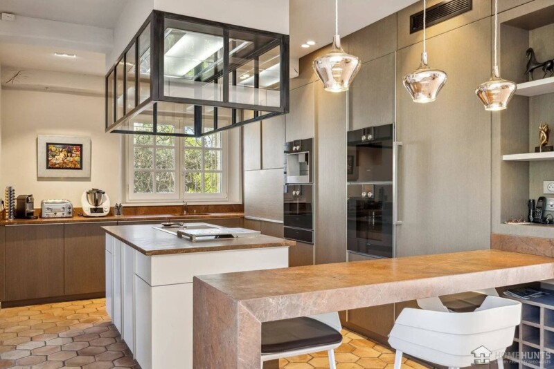 Nestled in a highly sought-after residential area of La Colle-sur-Loup, this splendid 240m2 single-storey stone property boasts breathtaking panoramic views over the charming villages of La Colle-sur-Loup and Saint-Paul de Vence. Built on over 2200m2 of flat land, its south-western exposure lets in natural light all day long. Just a few minutes from all amenities, this exceptional property enjoys a peaceful, privileged setting. Inside, everything has been designed for comfort and elegance. The spacious 100 m² living room, bathed in light thanks to large bay windows, opens onto vast terraces surrounding a beautiful heated infinity pool. The kitchen, equipped with top-of-the-range Gaggenau appliances, offers a modular space perfectly suited to receptions: open for convivial moments or closed for greater intimacy. The 50 m2 master suite is a true haven of peace, featuring a custom dressing room and luxurious bathroom with double walk-in shower. Two additional suites and an office complete the sleeping area, offering a functional and refined living space. The property's basement is equally pleasant, with a fully-equipped gym, a tempered wine cellar and plenty of storage space. Outside, the landscaped garden, adorned with century-old olive trees and Mediterranean plants, creates a harmonious environment conducive to relaxation, with the added bonus of a petanque court for convivial moments with friends. This prestigious property, in terms of both architecture and amenities, offers a luxurious and refined living environment, combining functionality and aesthetics. A rare property on the market, not to be missed!.