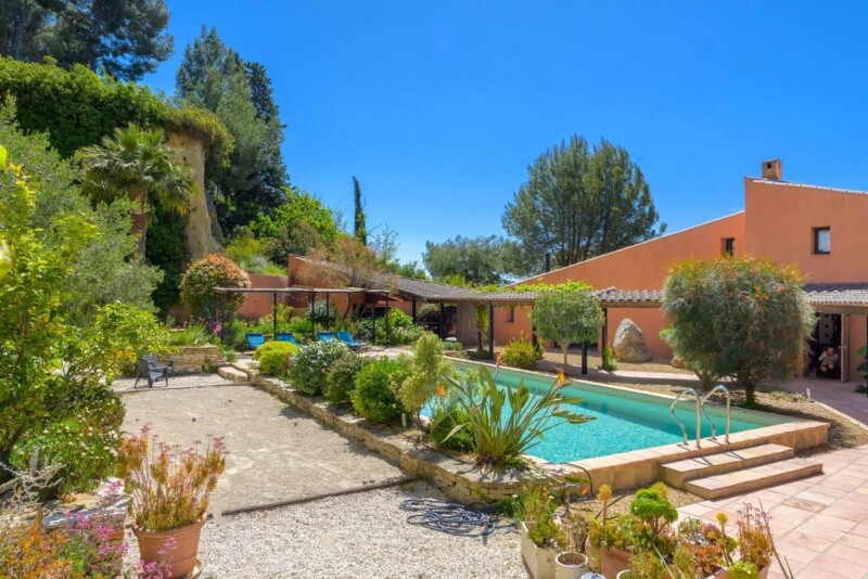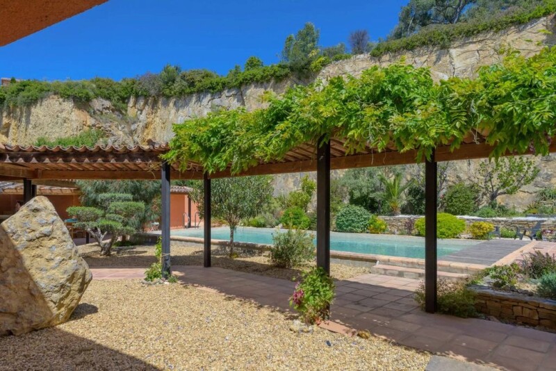 7 km from Toulon TGV train station, 10 km from the beach and 25 km from Toulon Hyeres airport, this beautiful architect-designed villa is easily accessible and set in a beautiful mineral setting. Built in 1998 on a former quarry, the garden is set against the original backdrop of a cliff of solid, clear rock, giving off a soothing, secure atmosphere. On the other side of the plot, there is an uninterrupted view of the sea. The house, built using the finest materials, comprises a 90 m2 living room on one level, with large windows on either side, a spacious, elegant cherry wood kitchen, a master suite (bedroom, dressing room and shower room), two bedrooms, a bathroom, and upstairs, a mezzanine, a bedroom opening onto a roof terrace with 180° views, and a toilet. The basement includes a cellar and utility rooms. Outside, landscaped garden, a blend of harmonious Japanese and Mediterranean styles, summer kitchen, shaded terrace, secure swimming pool (5.5 x 11), laundry room, sanitary facilities/toilets, boules area, carport for 4 vehicles. The property is fitted with solar panels, underfloor heating, reversible air conditioning, and is connected to water from the Canal de Provence. A harmonious combination of comfort, tranquillity and convenience.