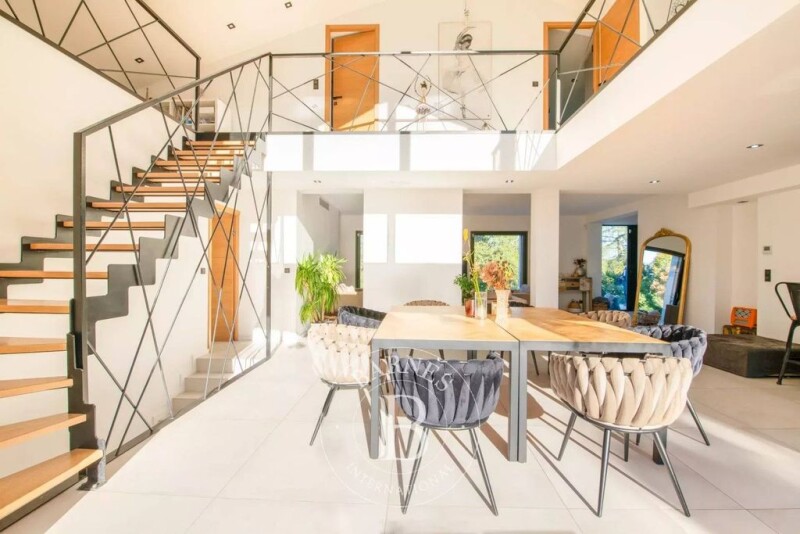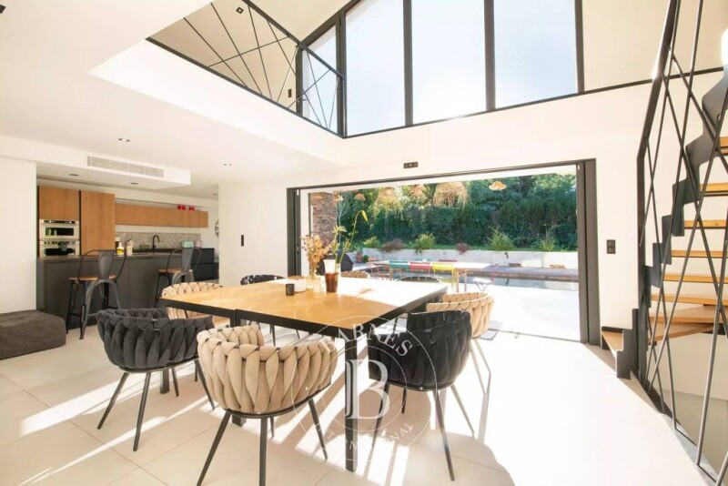 This contemporary villa with 200 sqm living space, built on a 1300 sqm plot, was completely renovated in 2018. It comprises, on the garden level, an entrance hall, a guest toilet, a laundry room, a vast living room, a kitchen with dining area, an office, as well as a bedroom with dressing room and en suite bathroom. Upstairs, you'll find a mezzanine, two additional bedrooms with dressing rooms and en suite bathrooms, and a separate toilet. The property also boasts a heated swimming pool, cellar and garage. This villa stands out for its comfort, luminosity and quality features. Its modern architecture, combined with generous volumes, and its privileged location close to the town center, the sea and golf courses, make it a real gem. ENERGY CLASS: A - CLIMATE CLASS: A / Estimated annual energy costs for standard use: 770€ - 1080€ - 2021 reference year ECD new version Agency fees payable by vendor - Montant moyen de la quote-part de charges courantes 300 €/yearly - Montant estimé des dépenses annuelles d'énergie pour un usage standard, établi à partir des prix de l'énergie de l'année 2021 : 917.9€ ~ 1080€ - Franck RENAUX-MOULY - Agent commercial - EI - RSAC.