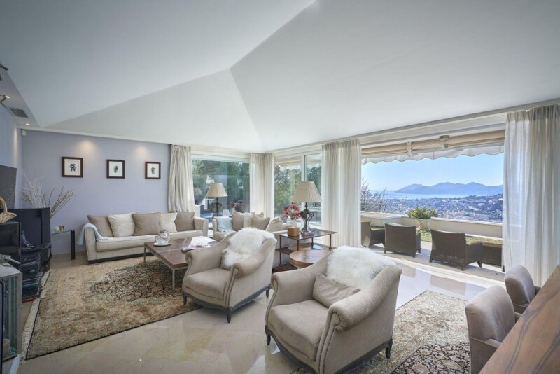 In a dominant position on the heights of Cannes and located in the heart of a closed domain, beautiful modern villa enjoying beautiful volumes as well as a panoramic view of the sea. Equipped with a sublime heated infinity pool as well as a garden landscaped and numerous terraces, it overlooks the bay of Cannes and the Esterel. This villa has a spacious reception as well as five en-suite bedrooms, a wellness area and a wine cellar. An independent studio with kitchenette and a garage for 2 cars complete this property. Contact us today to discover more about this splendid large property of the French Riviera.