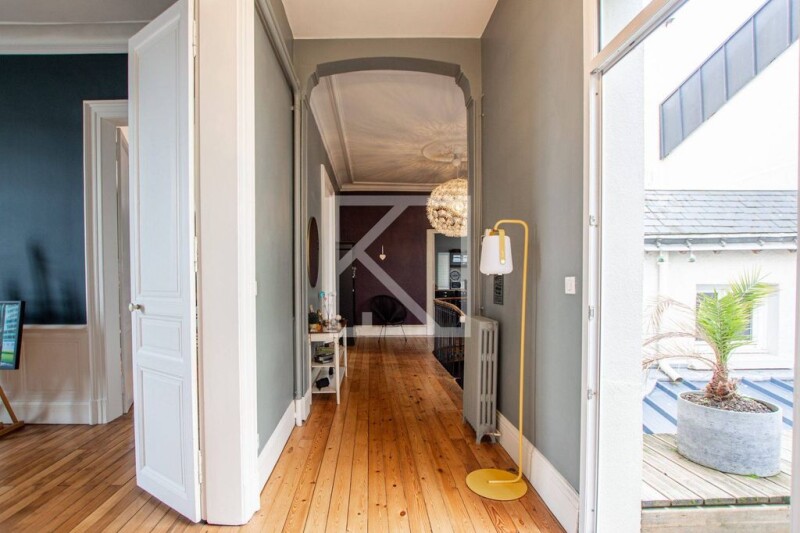 Karacterre Angers offers you this sublime flat in the heart of the city centre, with majestic volumes and top-of-the-range features. Ideally located in the immediate vicinity of Place Imbach, this Haussmann-style flat offers quality features that are rare on the market. The property is built around a beautiful period staircase leading to the living rooms. The staircase leads to a corridor with adjoining rooms. The atmosphere created by this property is much more akin to that of a town house, particularly in terms of its spaciousness and its private terrace set back from the hustle and bustle of the city, allowing you to enjoy some truly convivial, peaceful moments outdoors. To begin with, the magnificent living room is bathed in light thanks to three windows giving access to a large balcony that sets the tone from the outset. A pretty marble fireplace also adorns this room. This is followed by a very beautiful room, now used as a study and reading room with its built-in bookcase, but which could easily be converted into an additional bedroom if required. There are three bedrooms, all with large, pleasant volumes. One of them has its own toilet. Then, at the end of this large corridor, there is a shower room that, like the rest of the property, has been finished to a very high standard. The flat is complemented by a huge cellar, ideal for enthusiasts and collectors. There is also a parking space in a private, enclosed car park. Co-ownership charges: €557 per quarter Number of lots: 6 Property tax: €3,180 Karacterre specialises in authentic properties, We cover all the regions of PAYS DE LA LOIRE and BRETAGNE. ANGERS CHOLET SAUMUR RENNES SAINT MALO Discover our properties such as Maisons de Maîtres, Maisons bourgeoises, Lofts, Contemporary houses, Private mansions, Châteaux, Manoirs, Longères de charme, Appartements de caractère, biens d'exceptions, bien de luxe, bien de charme, immeuble de rapport, directly on the Karacterre immobilier website. Free estimate on request Réf 617 The sale price includes Agency Fees (F.A.I.) equivalent to 5% of the sale price. Net selling price: 770,000 euros. Fees: 38,500 euros. RCS Angers 899 365 811 Guillaume SAUVESTRE 0668102876 Including fees of 5% to be paid by of the purchaser. Price excluding fees 760 000 €. In a condominium of 6 lots. No ongoing proceedings. Energy class D, Climate class D Estimated amount of annual energy expenditure for standard use: between 2920.00 € and 4000.00 € for the years 2021, 2022, and 2023 (including subscriptions). Information on the risks to which this property is exposed is available on the Geohazards website: georisques.gouv.fr.