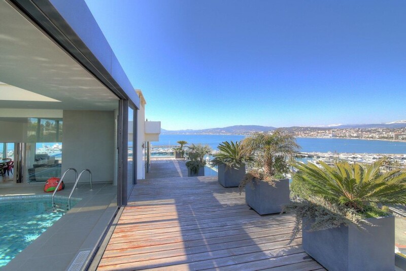 In one of the most prestigious residences on the Croisette, near Port Canto, with a superb view over the Bay of Cannes, magnificent duplex apartment with 580 m2 of living space. The apartment's seductive decor, top-of-the-range amenities, 428 m2 of terraces and indoor rooftop pool (7m x 3.5m). On the 7th floor, the apartment comprises an entrance hall opening onto a beautiful reception room with living room and dining room opening onto terrace, fully equipped kitchen, wine cellar, laundry room, storage room. Master bedroom with dressing room, full Madame bathroom and Monsieur shower room, bedroom opening onto terrace with shower room, as well as a guest toilet. Two further bedrooms with en suite bathrooms overlooking the Croisette and a fifth bedroom with en suite shower room and view of Cap d'Antibes. Children's dance and games room. On the 8th floor, the apartment comprises an entrance hall opening onto a beautiful reception room with living room and dining room opening onto a terrace, fully equipped summer kitchen with wine cellar, guest toilet, as well as an indoor swimming pool (7mx3.5m), sauna, hammam and shower. 3 garages, 3 utility rooms and a cellar complete the sale. Contact us for more details. Contact us today for more details.