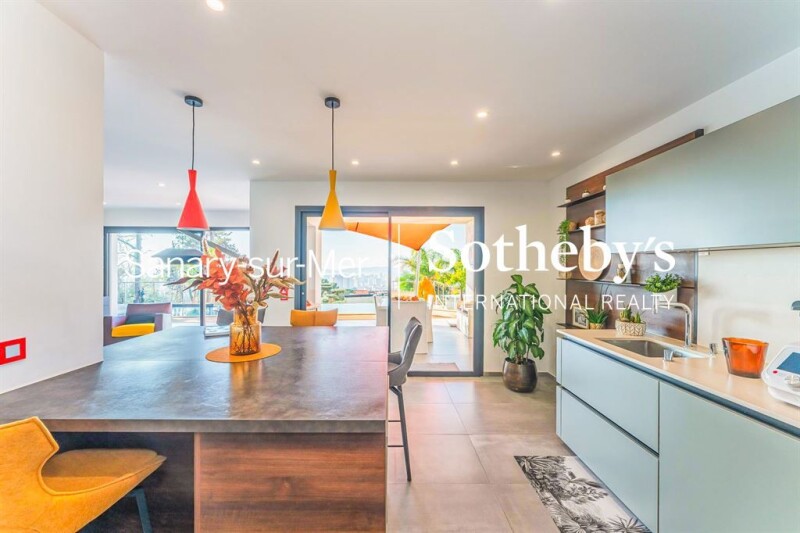 Exclusive Listing - For sale, contemporary villa with panoramic sea view in Toulon with swimming pool. Nestled on the sought-after heights of Toulon, in the Super Faron district, this contemporary villa of 178 sqm offers a dominant position and breathtaking views. Set on a vast plot of 1,059 sqm, it enjoys an exceptional panorama of the city and the sea. The landscaped garden, featuring an infinity saltwater pool, a petanque court, a pool house, and multiple wooded areas, is ideal for relaxation in complete tranquility. The house spans 2 levels and benefits from a south-facing exposure, ensuring beautiful brightness throughout the day. On the ground floor, a spacious living room with open kitchen provides a friendly and warm setting to entertain family and friends, as well as a first bedroom with its en-suite bathroom. Upstairs, you will find 3 other bright bedrooms, including a sublime master suite with bathroom, all opening onto a balcony-terrace. A shower room completes this harmonious and functional living space. The property includes a closed garage as well as additional parking spaces. This exceptional villa perfectly combines modernity, comfort, and breathtaking views.