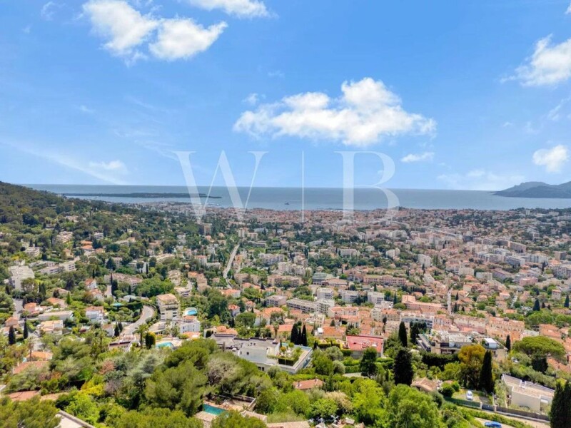 Ideally located on the heights of Le Cannet, in a dominant position, magnificent contemporary villa of approximately 247 sqm completely renovated with quality services and materials and offering an unobstructed view to the sea from the terrace and the first floor. Built on a landscaped plot of 1,200 sqm with swimming pool, it is composed of an entrance, a beautiful bright living room of 70 sqm, a dining room with fully equipped open kitchen, 4 en-suite bedrooms each with their bathroom/shower and dressing room, a laundry room and a separate toilet for guests. A large closed garage of 26 sqm, 4 terraces and plenty of parking spaces. Information on the risks to which this property is exposed is available on the Georisks website: georisques.gouv.fr.