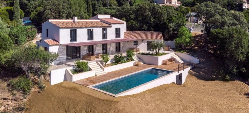 In the heart of a sought-after area of Cavalaire-sur-Mer, beautiful new villa with sea view, nestled in the hillside with enviable vistas. Located in absolute calm, this turnkey villa has bright volumes spread over 2 levels, including: On the ground floor a beautiful living room with living room and its American kitchen, a laundry room, as well as a master with shower room and dressing room. The first floor offers 3 beautiful suites, all open to the sea view. Built on a plot of more than 2000m2, the property enjoys large outdoor spaces, decorated with a 12x4m heated swimming pool surrounded by colorful Mediterranean species. A secure double closed garage. The villa has reversible air conditioning, double glazing and a home automation system. It is still under its ten-year guarantee. Contact us today to discover more about this modern luxury sea view property.