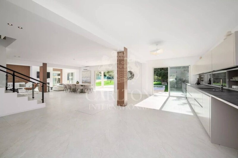 Mouans-Sartoux, just a few minutes’ walk from the village and its shops, this magnificent fully renovated villa is set on a flat plot of approximately 2,200 m². The ground floor opens onto a large sunny terrace, offering a beautiful view of the pool and landscaped garden. This level includes a bright double living room with a modern open-plan kitchen, a cozy TV area, and guest toilets. On the first floor, the master bedroom features an en-suite bathroom, a walk-in closet, and a private terrace. Two additional bedrooms share a shower room and each have direct access to a terrace. The spacious basement offers numerous possibilities for conversion: a gym, a home cinema, or a recreational space, depending on your needs. It also includes a wine cellar and a laundry room. Outside, a small independent apartment is ideal for a teenager, guests, or staff. A garage and several parking spaces complete this property. Located in a peaceful and residential environment, this fully air-conditioned villa has been recently renovated with care and is ready to move into. For more images, and information about this property please enquire. Ref. 14020.