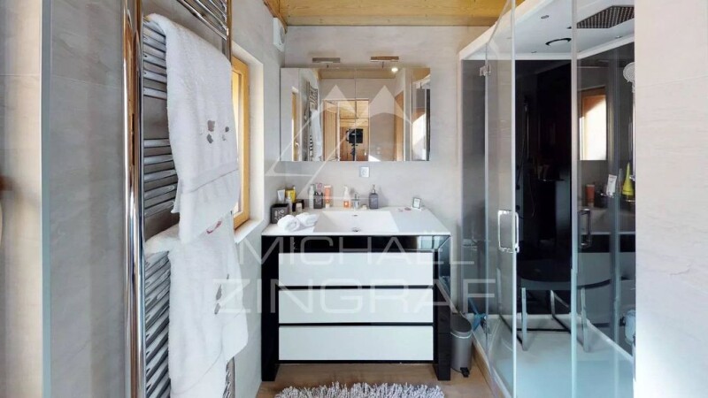Michaël Zingraf Real Estate Megève is pleased to offer you this renovated five-bedroom flat of 148.95 m2 (Carrez law measurement - total surface area 164.74 m2), nestled in the centre of the village for lovers of ‘Megève tout-à-pied’. This duplex apartment comprises a vast living/dining room with cathedral ceiling and wood-burning stove, three comfortable bedrooms with en-suite bathrooms and showers, and two bedrooms with en-suite shower rooms and a living room on the lower level, so you can welcome your friends and family independently. With their generous volumes and the elegance of a mountain chalet, these two flats together offer comfort and serenity. Property subject to co-ownership status (5 lots). No proceedings in progress.