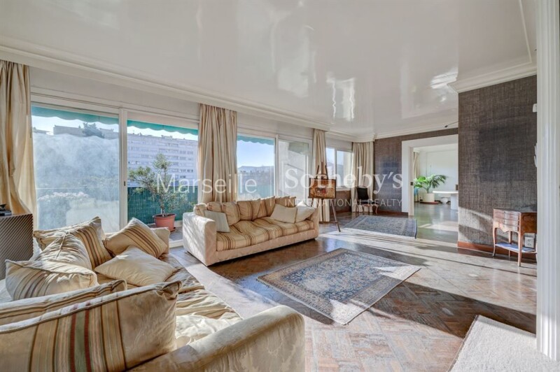 For sale, in the 8th arrondissement of Marseille, Carré d’Or, a 216 sqm apartment in a private residence. Located in the heart of a secure and prestigious complex near shops and the beach, this 216 sqm family apartment (194 sqm Carrez law) boasts three terraces. The living spaces span nearly 100 sqm, offering rare and generous volumes, including a living room, dining room, and separate kitchen. The sleeping area comprises four bedrooms and two bathrooms. A storage cellar is included.