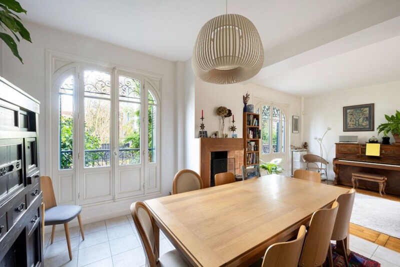 Located on a very quiet street between the RER E (10 minutes) and the Bords de Marne (4 minutes), this superb house is perfect for the whole family. It consists of an entrance hall leading to the large living room and dining area, as well as the eat-in kitchen, which is fully equipped and fitted, along with a separate WC. The first floor includes four bedrooms, a bathroom, and a shower room. The top floor is arranged as a large master suite with a shower room. The basement is divided into a garage, a laundry room, a boiler room, and a storage cellar. Finally, a pleasant garden on the side of the house is perfect for enjoying good times with family or friends. (2.05 % fees incl. VAT at the buyer's expense.).