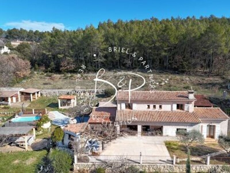 Lorgues, for sale, very beautiful property in a dominant position with a view, nestled on a magnificent, beautifully landscaped plot. This traditionally built villa offers a spacious living space from where you can access the outdoor summer kitchen and very large terraces, offering breathtaking views. Ideal for relaxation!! Enjoy the absolute calm, just 5 minutes by car from the center of Lorgues and Draguignan. A haven of peace with the luxury of nature at your fingertips. The plus: An annex converted into an independent studio will allow you to accommodate your family or friends, a double car port, wooden shelters, workshop, an above-ground swimming pool with fountain... The installation of a traditional swimming pool is possible. Link to video of the villa:.