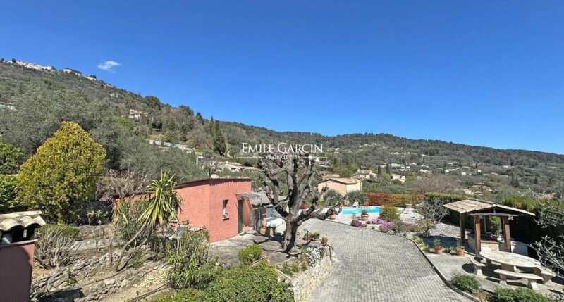 Located in peaceful green surroundings close to the shops and schools of Peymeinade, this charming house boasts exceptional views of the hills. The property has been renovated and is in very good condition. It is bathed in natural light at all times of the day, thanks to its triple aspect. The ground floor features an entrance hall and a living room backing onto a south-facing terrace. Exceptional ceiling height of 6 meters! Dining room with fireplace and adjoining open kitchen, presenting a delightful view of the garden, the swimming pool and the surrounding hills. There are two bedrooms and a shower room with toilet on the ground floor. Each room has access to the terrace and the garden. Upstairs, you will find a library, three bedrooms, a home office and a shower room with toilet. The upstairs rooms all overlook the garden. The independent studio offers approximately 20 sq.m of living area with a separate entry. It is composed of a small kitchen, a bedroom and a shower room. Additional facilities include: a double garage of approximately 27 sq.m with electric door; a laundry room of approximately 14 sq.m; a concrete swimming pool treated with chlorine; a pool house. The beautiful terraced garden of approximately 2,400 sq.m is adorned with olive trees, fruit trees and Mediterranean vegetation. Pétanque area, wood oven, BBQ. A veritable oasis of calm, ideal for all lovers of nature and tranquility!.