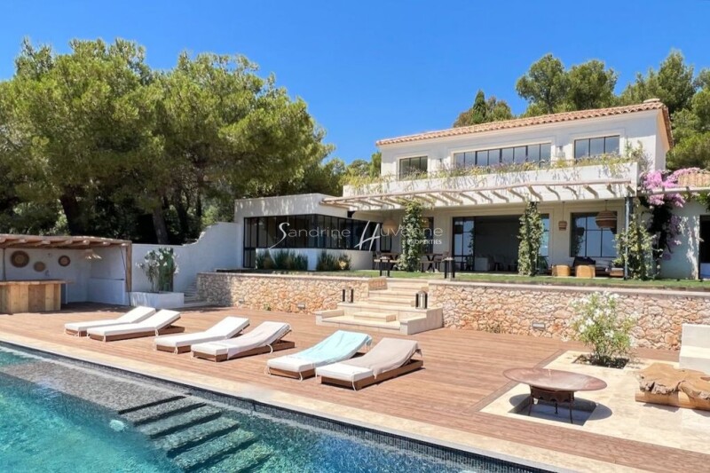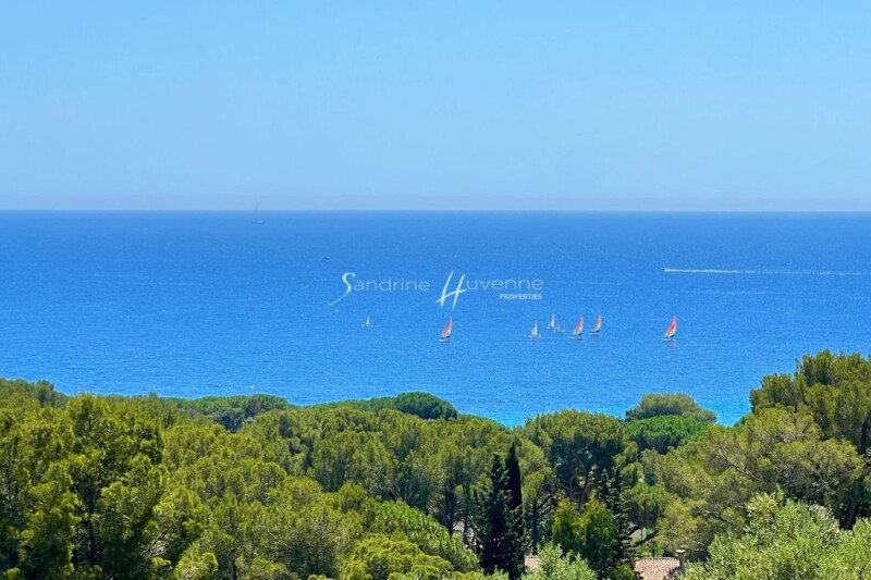GULF OF SAINT-TROPEZ: Exceptional Location and Sea View, Close to the Beach on foot! Sumptuous & Spacious Property of 370m2 built on enclosed and landscaped land of approximately 2500m2. Calm and brightness facing nature, warm and modern design, all the desired comfort is present! On one level, the large 65m2 living room with superb sea view opens directly onto the covered terrace and the beautiful lawn, and access to the 4.5mx15m swimming pool. The fully equipped kitchen/dining area offers immediate access to the covered and flowered terrace, with an exceptional sea view! Upstairs, the absolutely comfortable Master bedroom has a magical sea view! 2 other beautiful bedrooms en suite on one level with access to the garden and patio are very welcoming and warm. Overlooking the garden, 2 additional bedrooms with very comfortable bathrooms allow you to receive family and friends. In the basement, a fitted room will serve as a games room, and/or gym, and/or cinema room according to your wishes. Parking for motor vehicles is easy, both at the rear of the villa and in front, with a carport for 4 to 6 vehicles. This property is without equal, its services and the ''high-end'' materials used are meticulous, and their implementation perfectly carried out. The carefully thought-out decoration and furnishings have been chosen with taste and current trends, down to the smallest detail. Treat yourself to this unique place, because you deserve it!.