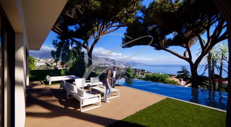 A few minutes from Monaco, private estate, luxurious new contemporary villa set in 1,049 m² of flat, planted garden with infinity pool. Breathtaking panoramic sea view. Double reception room, fitted kitchen, 4 bedrooms with en suite bathrooms. An outbuilding and several parking spaces complete this exceptional property.