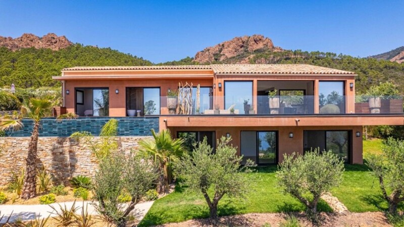 Splendid, recently completed contemporary villa. Ideally located in Saint-Raphael, in the Antheor district, it offers spectacular sea views and quick access to sandy beaches, just 5 minutes walk away. Only 25 km from Cannes' Croisette, this residence embodies modern elegance, designed by a renowned architect. The vast 83 sq m living area opens onto a large terrace with a panoramic view of the Mediterranean, complemented by a 4 x 9.60 m salt water infinity pool. The spectacular view of the Esterel red rocks further enhances its appeal. With a living space of 237 m2, the villa includes 5 bedrooms, including a sumptuous 32.30 m2 master suite and another 30 m2 room that can be converted into a separate living space. You will also have a 62 m2 basement housing a 39 m2 garage and a wine cellar. Contact us for more information.