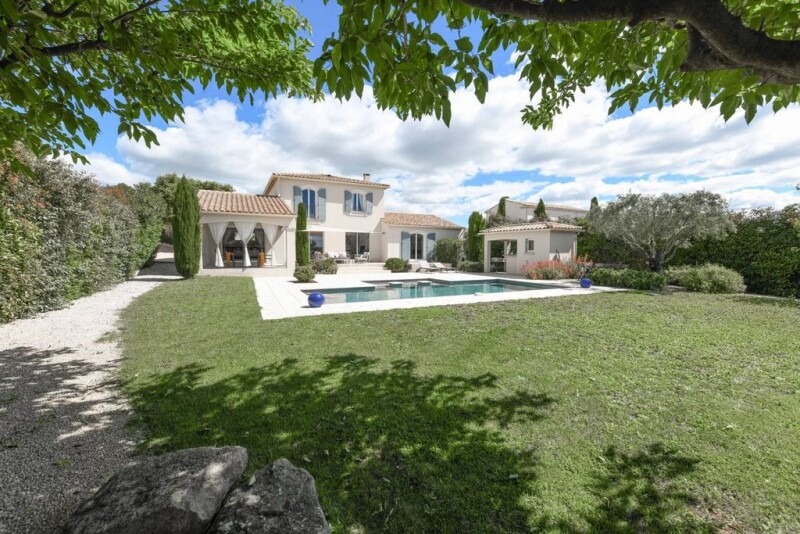 Uzès at only 5kms, recent villa of construction 2012 on closed and raised ground of area 1203m ² with swimming pool of 10m x 4m . The entrance of this elegant house serves a beautiful bright reception complex with chimney, a large fully equipped kitchen with a laundry room. These reception rooms open onto a charming partially covered terrace with access to the garden and pool. On the ground floor also three bedrooms including a spacious suite with bathroom and dressing room, and a second bedroom with bathroom. Independent bathroom cabinet. From the entrance, a staircase leads upstairs to two pleasant bedrooms, which offer beautiful views of the surrounding countryside, and a bathroom. Workshop, technical room, parking space on the plot. Air conditioning, double glazing, automatic gate. Comfort and quality services for this very pleasant property, located in a popular village of Uzège with shops. Les informations sur les risques auxquels ce bien est exposé sont disponibles sur le site Géorisques : www.georisques.gouv.fr État des risques et pollution: réalisé (null).