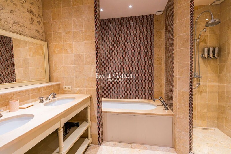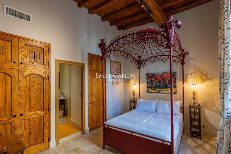 A rare find. Located in the heart of the village, this magnificent old house has been completely restored using materials of the highest quality. Combining authenticity and modern comfort, the property reflects a keen eye for detail and respect for period features. It presents a large living space on the ground floor including two living rooms, a dining room and a fully fitted and equipped kitchen. It all backs onto an internal courtyard with a swimming pool. There are a total of five bedrooms and bathrooms, including a suite with its private dressing room. Mezzanine and sun terrace with views of the village rooftops. Entry archway with car space.