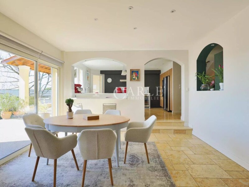 Are you looking for a new cocoon where you can feel like you're on vacation every day? Come and discover this 2003 property, ideally situated in a private cul-de-sac and boasting superb unobstructed views. This exceptional villa is ideally located not only for its views, but also for its immediate proximity to the shops in the town center. You'll enjoy 232 m² of living space for a total floor area of over 390 m² on a beautifully landscaped 1,203 m² plot, with its south-facing swimming pool, boules court and various covered and uncovered terraces, so you can enjoy the outdoors all year round. From the moment you enter, you'll be seduced by the light and space. The large living area of over 90 m², comprising a cathedral lounge, dining room and open kitchen, gives access from each space to a large terrace with a view, partly covered. On the first half-level, you'll find a master suite with study and dressing room, bedroom and shower room. On the second half-level, you'll find 3 bedrooms and 2 shower rooms. The lower half-level offers almost 35 m² of space that can be made independent and used as a workshop, cinema room, gym, etc. The basement comprises a 77 m² garage, a 30 m² cellar, a laundry room and a technical room with toilet accessible from the swimming pool without passing through the house. Don't wait any longer to discover this property through the virtual tour we'll be happy to send you on request... Information on the risks to which this property is exposed is available on the Géorisques website: www.georisques.gouv.fr État des risques et pollution: réalisé (2025-04-09).