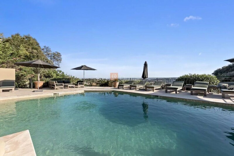 This stunning villa located in the charming Sainte Maxime area offers an exceptional living experience thanks to its unique location on the golf course and proximity to the iconic sites of Saint-Tropez. The tranquility of the green surroundings, combined with the lively atmosphere of the Côte d'Azur, makes this villa a dream location for those looking for a perfect balance between relaxation and entertainment. The interior With a generous living space of 340 m², this villa offers not only space but also sophistication and comfort. The bright and open living room is tastefully decorated and equipped with comfortable seating. The living room flows seamlessly into the spacious open kitchen, where a large dining table invites you to long, convivial dinners. From the living room and kitchen, there is direct access to the sunny terrace via large sliding doors. There is also a pleasant terrace on the mountain side of the villa. The modern and very luxurious kitchen is fully equipped including a cooker, dishwasher, combination microwave, combination steam oven, two fridge freezers and a large wine cooler. On the ground floor, a practical room is equipped with a double washing machine and tumble dryer. The villa has six generous bedrooms, each with an en-suite bathroom with toilet and shower and air conditioning. The bedrooms offer the ultimate in comfort, with luxury box-spring beds and modern bathrooms. The first floor bedroom serves as the master suite, with a spacious double bed and a luxurious bathroom equipped with a bathtub, double walk-in shower, double sink and toilet. The second master suite has the same décor and is located on the lower level of the villa. The other bedrooms, both in the villa and in the independent guest house, offer the same high-quality amenities, ensuring privacy and comfort for all members of the group. The exterior The villa is set on a spacious and fully enclosed plot of no less than 4,100 m², surrounded by greenery and offering numerous relaxation areas. The heated L-shaped swimming pool (10x10 meters) is perfectly positioned in relation to the living room and kitchen, allowing the indoor and outdoor spaces to be blended effortlessly. The sunny south-facing terrace is equipped with comfortable sun loungers, parasols and an outdoor shower. With a large carport (with 2 electric charging options) and ample parking for several cars, as well as a private boules pitch, this villa offers everything you need for an authentic South of France experience. The surroundings Sainte Maxime is a lively village that offers the perfect mix of relaxation and entertainment. Just a few minutes away you will find the beautiful sandy beach La Nartelle, where you can enjoy the sun during the day and dine in one of the atmospheric beach clubs in the evening. The centre of Sainte Maxime is a 10-minute drive away, with many shops, restaurants and lively streets inviting you to explore.
