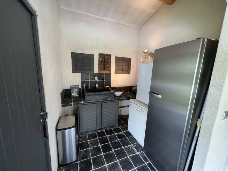 HOUSE - 10 MINUTES FROM AIX EN PROVENCE, close to a lovely provençal village and all amenities, located in a privileged countryside setting, old former hunting lodge completely renovated with quality materials. In perfect harmony with its environment, quiet, privacy, it’s located in the heart of a superb fenced, landscaped garden 2 500 sqm planted with many Mediterranean trees and fruit trees. Nice pool (12 x 4 m) with its teak terraces, pretty pool house with a shaded terrace and a summer kitchen. The main house all in stones : comfortable living room with a pretty style chimney, shaded terrace on the south, superb dining area in a large veranda, small cozy living room to relax, spacious modern furnished kitchen with dining space, storage room / laundry room, 1 bedroom with private shower room, toilet. Upstairs : 1 main comfortable bedroom with private shower room, 2 other bedrooms, dressing room, shower room, toilet. A pretty independent bedroom, adjoining the pool house, with private shower room and toilet. Independent studio with living room, furnished kitchen, shaded terrace, shower room with toilet. Garage, carport, garden shed, vegetable garden, well. Good exposition, the house is really pleasant to live in. In perfect condition, the materials are noble, the dimensions are generous and the volumes harmonious. Tastefully decorated, this quality house full of charm will be a peaceful place for holidays or in permanent residence. État des risques et pollution: réalisé (null).