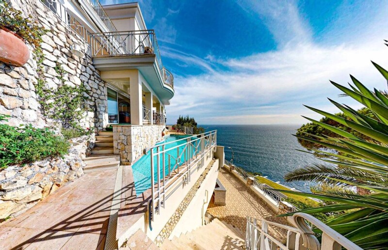 Splendid villa in Cap de Nice with an extraordinary panoramic view over the Baie des Anges de Nice. With an area of approximately 300m2 of living space with large terraces on each level opening onto the sea, on a plot of 700m2 with a swimming pool. The villa is made up of 3 levels, also accessible by a lift. It has 9 rooms, double living rooms, 6 bedrooms with bathrooms, and each with fantastic sea views. 2 garages, parking for 2 cars, jacuzzi.