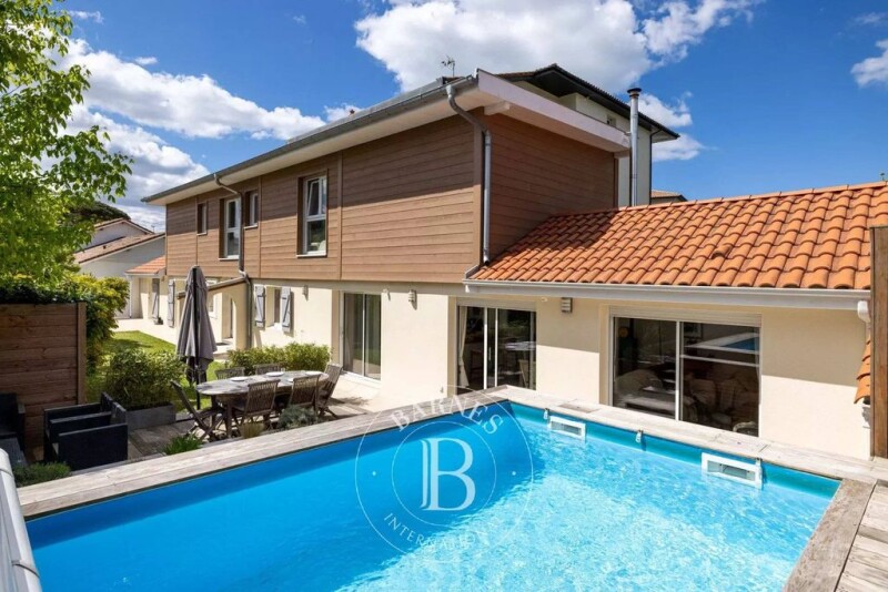 Near the heart of Capbreton's town centre, be charmed by this exquisite 200sqm residence, meticulously renovated in 2021, blending modernity with comfort. Upon entry, you are greeted by a welcoming area complete with storage and a quaint reading nook, followed by a separate lavatory and two convenient shower rooms. The contemporary kitchen unfolds into a generous living and dining space, establishing a warm and inviting atmosphere. The ground floor also presents two cosy bedrooms. Ascending to the first floor, a central office area leads to two additional bedrooms, one boasting a walk-in wardrobe, alongside a bathroom and a toilet, offering a secluded and efficient living space. The property is completed with a secure bicycle store and an independent studio, ideal for accommodating guests or as a potential rental opportunity. The studio features an open-plan kitchen and living area, a bedroom, a shower room, and a lavatory. This home represents a rare chance to reside in a tastefully refurbished property, mere moments from the conveniences of Capbreton's town centre.