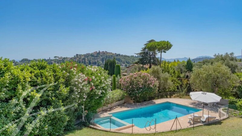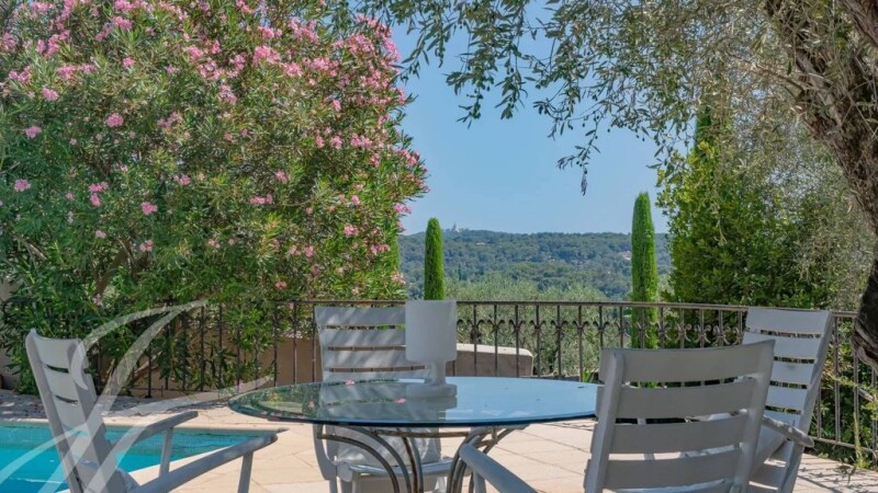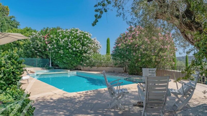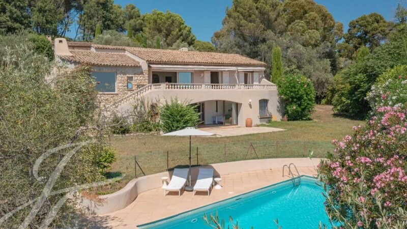 In one of the most sought-after areas of Mougins, this Provencal property will charm you with its panoramic view of the hills, sea and old village of Mougins. The main villa offers a superb high ceiling living area opening onto a vast south-facing terrace with magnificent views, an independent kitchen, 5 en suite bedrooms, a beautiful additional reception room that can also be used as a pool house on grounds of 2391 m2 with swimming pool. In addition, there is an independent one bedroom guest house. Carport, several parking spaces with 2 access gates and a shared tennis court.