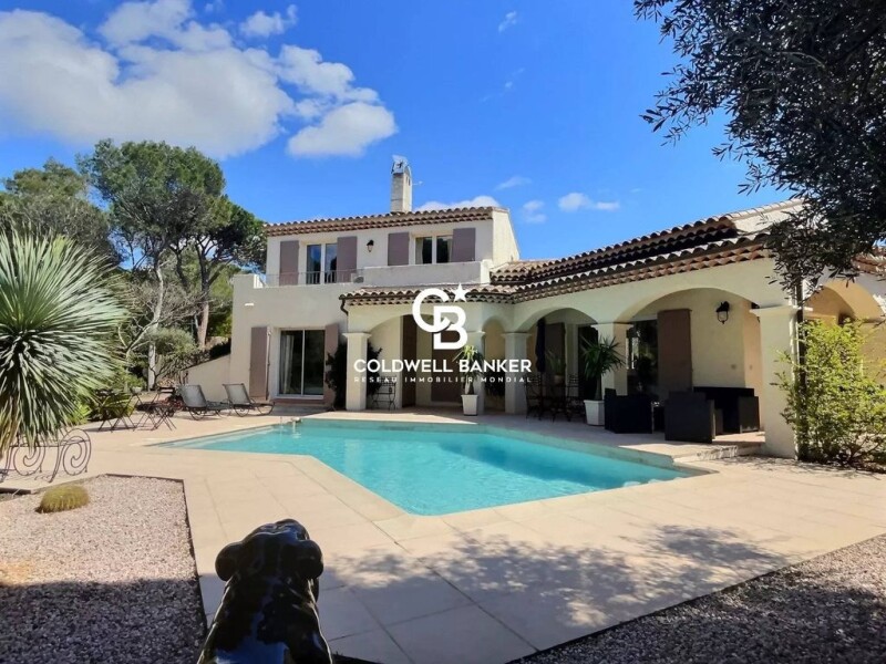 Superbly located on the Valescure golf course, this beautiful villa with pool is an opportunity not to be missed. Nestled in a highly sought-after and quiet estate, this property consists of an entrance hall, a cathedral living room with fireplace, an independent kitchen, 4 bedrooms including 2 on the ground floor, 1 bathroom, 2 shower rooms and 2 toilets. This villa also features a converted garage and a carport, as well as a 888m2 plot with the possibility to park several cars. Enjoy outdoor living with a magnificent pool and landscaped garden offering an ideal living environment for relaxation and entertainment. This property is a true haven for nature lovers and golf enthusiasts. Located close to all amenities, this property is a rare opportunity to acquire a home in an exclusive and highly sought-after location. Contact us now to arrange a visit and discover for yourself all that this property has to offer.
