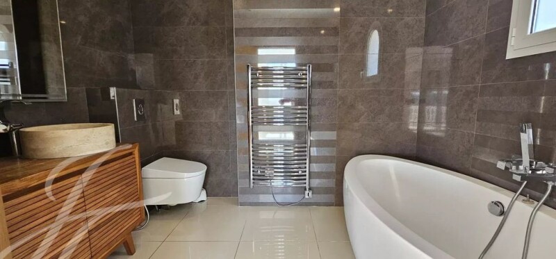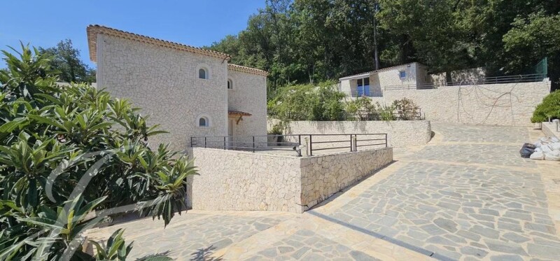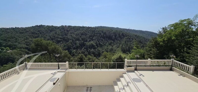 This stunning contemporary 250 sq.m villa, ideally perched in a dominant position in Vence, offers breathtaking panoramic views of the surroundings. Set on a fully enclosed and landscaped 3,000 sq.m plot, this exceptional property combines space, comfort, and elegance. The ground floor features a spacious, light-filled living room, a dining area, and a large open-plan kitchen fully equipped for culinary enthusiasts. There is also a master suite with a walk-in closet, an en-suite bathroom, and direct access to a large terrace leading to the garden and pool area. Upstairs, two large bedrooms, each with their own bathroom, and another master suite with a walk-in closet and en-suite bathroom open onto a terrace offering stunning views. The villa's amenities include a heated pool surrounded by terraces, a sauna, a gym with a bathroom, as well as underfloor heating via a heat pump and integrated air conditioning. A spacious garage, a fully equipped studio in a separate outbuilding, and solar panels complete the luxury features of this property, designed for ultimate comfort under the Côte d'Azur sunshine. État des risques et pollution: réalisé (null).