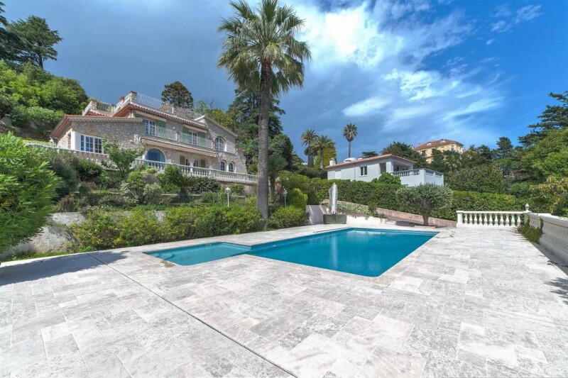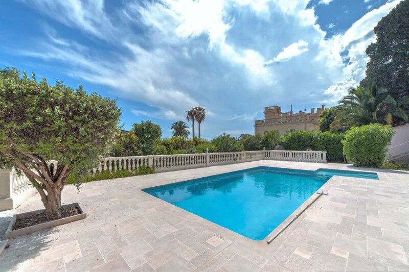 Come and visit this charming and luxurious villa completely renovated with high quality materials, offering a living area of 350 m², located at the bottom of the area calling La Croix Des Gardes in Cannes in a quiet area, close to the Croisette and the sea, beach, with a panoramic sea view, not far from Le Suquet and the old port. On the ground floor you have a living room with fireplace, accompanied by a dining room all over an area of 45m², then a separate fitted kitchen, and a utility room with its small wine cellar. Upstairs you have a spacious suite with a dressing room and its shower room opening onto a large terrace with a panoramic sea view. Then 3 other bedrooms with shower room and toilet. The top floor is a roof terrace which could accommodate a lounge area and a bar to admire the sunset. At the back of the house you will find an guest house with a living room, a corner kitchen, a bedroom and a bathroom. The swimming pool is at the entrance of the villa with its pool house, then finally a garage and two parking spaces. The whole on a ground of 2 052 m ². with beautiful mosaic swimming pool and wide beaches.