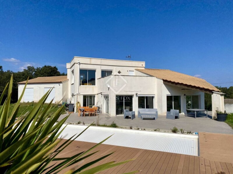 Lucas Fox International Properties, architect-designed house to renovate and its large plot, in the sought-after Fondespierre area of Castries. This 240 m² property was built in 2000 on a huge plot of nearly 2,800 m² where numerous olive trees of respectable age adorn the garden. The entrance opens onto a large, bright, south-facing living room of 75 m², with a TV area that can be closed off. A separate kitchen with a pantry adjoins the dining area and opens onto the terrace. There are also three bedrooms and two bathrooms on the ground floor of the west and east wings of the house. The upper floor is reserved for the master suite which consists of an office, which can be used as an additional bedroom, a large bathroom with dressing room and a solarium, as well as the bedroom, overlooking the garden. The latter surrounds the house and benefits from a pleasant swimming pool of 11 m by 3 m, surrounded by a terrace, a pétanque court as well as numerous parking spaces if necessary. A crawl space is located beneath the entire building and could easily be used as a cellar. A closed garage and a laundry area complete the features of this property, which requires extensive renovation work. Get the complete file and more information from your dedicated agent, Sébastien ANGLADE Commercial Agent - RSAC n° 813 793 833 Montpellier. Information on the risks to which this property is exposed is available on the Géorisques website: www.georisques.gouv.fr.