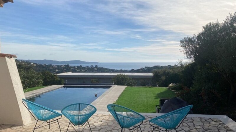 Magnificent renovated and air-conditioned villa in Cavalaire offering an exceptional sea view. Ideally located in a dead end of a sought-after subdivision of Cavalaire, this renovated villa is approximately 200 m2 on a wooded plot of 1,618 m2. Once inside, there's a entrance hall, spacious living and combined dining room, fully equipped open plan kitchen, 5 bedrooms including one with a bathtub, 2 shower rooms and 2 toilets. On the practical side of life there are numerous cupboards. A garage and several outdoor parking spaces complete this property. Several terraces and a beautiful swimming pool with panoramic sea view. Contact us today to discover more.