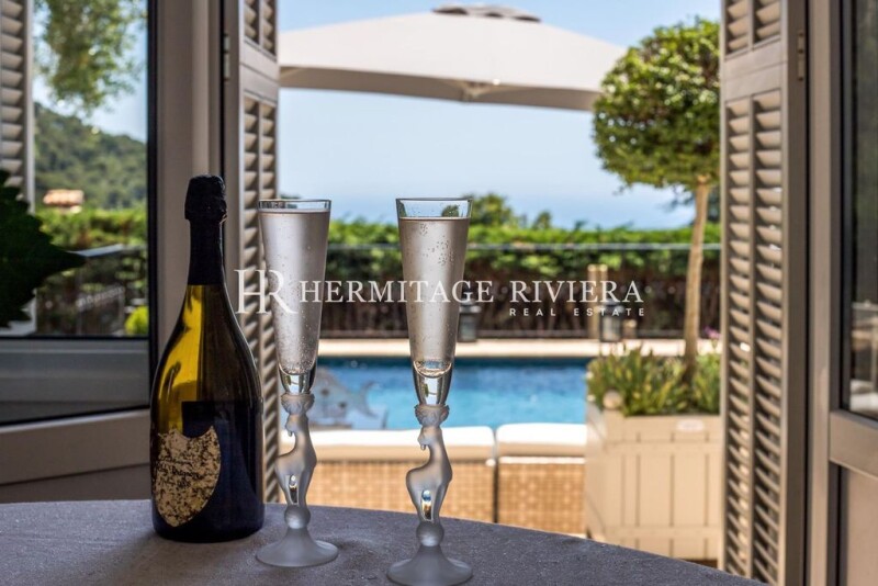 New beautifully renovated property in dominant position close to Eze Village with pool 10x8m, just 15 minutes from Nice and Monaco, arranged on two levels with nice garden of 800m2. The property is composed of on the lower level, the entrance hall, one bedroom with shower room, equipped kitchen with access to the covered lounge terrace with barbecue, guest toilette, living and dining area opening into the terrace and pool area with a sea view. On the upper level : laundry, bedroom with shower room, master suite with dressing, bathroom and access to the balcony with sea view. Two separate apartments with living room with kitchen, one bedroom and shower room. Independent studio with shower room. Alarm, air-conditioning, inside and outside audio system. Parking for up to seven vehicles.