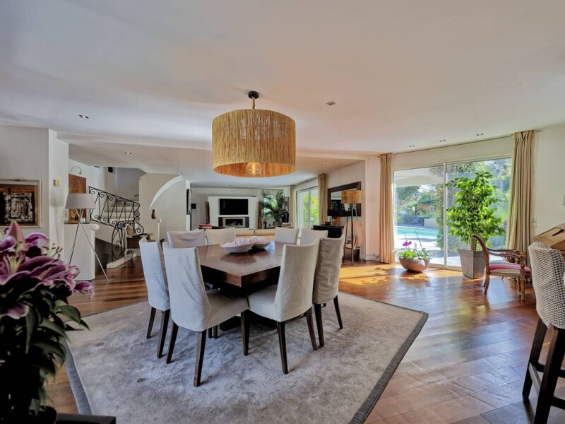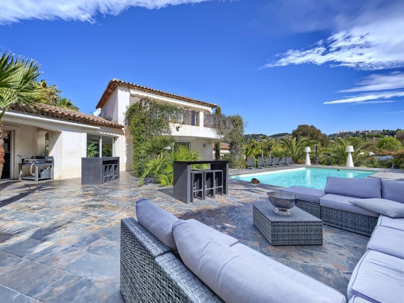 Ideally located in a residential area with a countryside atmosphere, in a dominant position, this splendid neo-Provencal style villa will seduce you with its superb volumes, the quality of its services and its superb view of the village of Saint-Paul de Vence. Located on a plot of approximately 1500 m2 offering beautiful sunshine, the villa with an area of approximately 273 m2 consists of: Main level: a majestic entrance, a huge living room opening onto the pool area thanks to beautiful bay windows, an equipped American kitchen, a laundry area, a beautifully decorated bedroom with its shower room (independent access) Upstairs: 3 bedrooms all with terrace offering a superb panorama, a spacious bathroom (bath & shower), Lower level: a finished basement offering various solutions - fitness, wellness, home cinema, according to everyone's tastes! For visiting guests, superb apartment completes the villa (with interior or independent access), perfectly equipped offering a living room, a kitchen area, a bedroom and a bathroom with an outdoor patio. Outside: a magnificent swimming pool area (with outdoor shower) as well as a pool house with summer kitchen invite relaxation and conviviality. Very pretty garden planted with Mediterranean species, a beautiful petanque court, a garden shed... Services: electric gate, automatic watering, carport, numerous parking spaces, mains drainage... In summary, a family villa very pleasant to live in due to its atmosphere and its layout, to visit without further delay!.