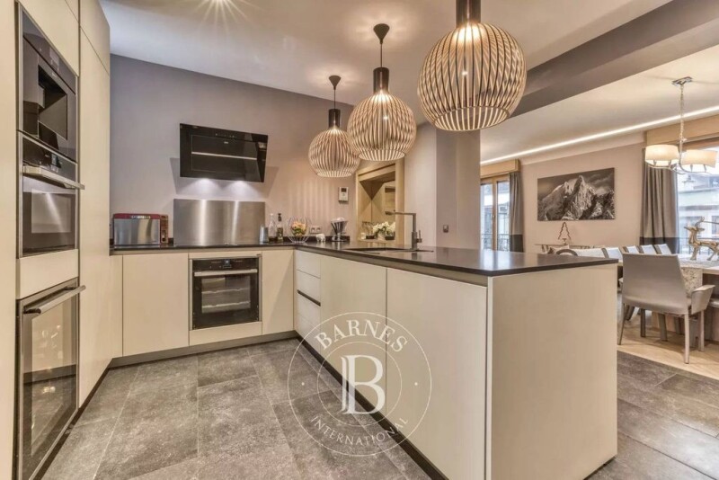 Apartment Le Royal. Welcome to the luxurious setting of Chamonix, where elegance meets simplicity. This stunning three-bedroom nestled in the heart of Chamonix offers immediate proximity to shops, the train station, bus stops, and restaurants. You are at the center of the action, all while enjoying the tranquility of the mountains. Completely renovated with taste and high-end materials, this property provides a spacious and functional living space, three beautiful bedrooms including two en-suite, a bathroom, and a guest toilet. Its contemporary and refined design, along with its soothing color palette, creates a warm and welcoming atmosphere. Enjoy the Mont Blanc view from the comfort of your living room. Sold with two large ski lockers and a cellar, this unique property offers an exceptional residential experience in the very heart of the Chamonix valley. Do not hesitate to contact our English speaking team at Barnes Chamonix on +33 4 50 18 52 38 for more information Condominium of 3 lots. Annual charges: 1660 €.