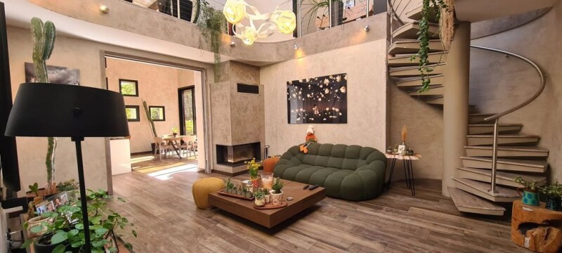 Saint-Raphael, a popular district of Boulouris, quiet and not overlooked, this contemporary 6-room villa seduces with its generous volumes, quality materials and services. The high ceilings and the central glass roof ensure constant brightness and ideal transparency for a warm atmosphere. On one level, it offers an entrance hall with cloakroom and toilets, double reception room with open fitted kitchen, opening onto 2 terraces from east to west, with spa. 2 en-suite bedrooms with bathroom or shower, toilet, dressing room. Office (or 3rd bedroom), opening onto terrace. Upstairs, circulating passageway under the glass roof (with blind to shelter from the sun in summer), master suite with dressing room, bathroom/shower/wc. Attic converted for storage. Cellar, garage, carport, all on superbly landscaped grounds with a small swimming pool. All 1.2 km from the sea and the shops of Boulouris.
