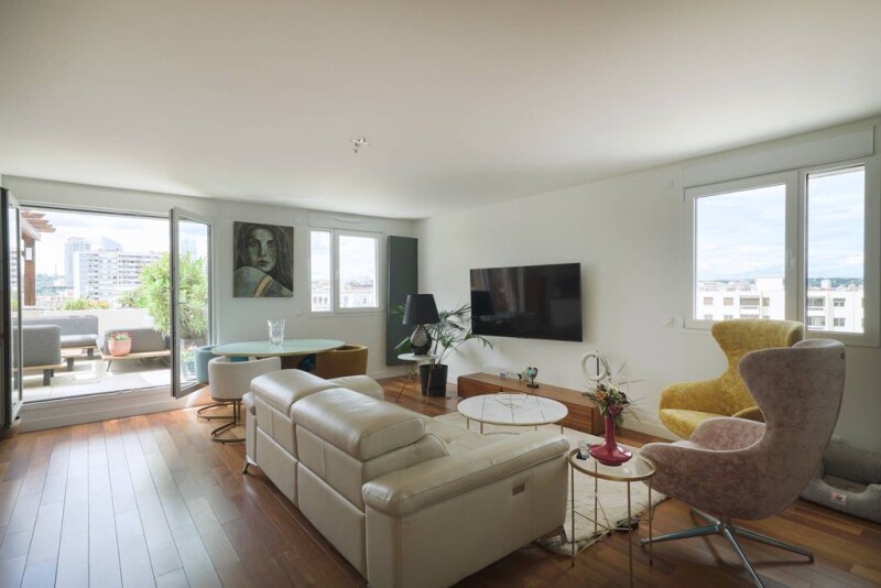 This apartment, fully renovated with taste in 2022, less than a kilometer from Part-Dieu train station, benefits from an exceptional 36m2 terrace and beautiful light in all rooms. The perfectly designed entrance with plenty of storage leads to a large, high-end American kitchen. It is fully equipped with a monumental central island, a Miele wine cellar, and all the latest appliances for optimal use. The kitchen opens onto the tastefully decorated living room, and an office space separated by hanging shelves can easily be converted into a bedroom. Two large en-suite bedrooms with their own bathroom or shower complete the ensemble. Each has a large dressing room and adjoining Japanese toilet. This rare property for sale stands out from its counterparts by the quality of the materials chosen for the layout of each room, as well as by its false ceilings and soundproofing. Finally, the direct proximity to a European transport hub (Lyon Part-Dieu station) and the breathtaking view of Lyon and its beautiful basilica will immediately seduce you.